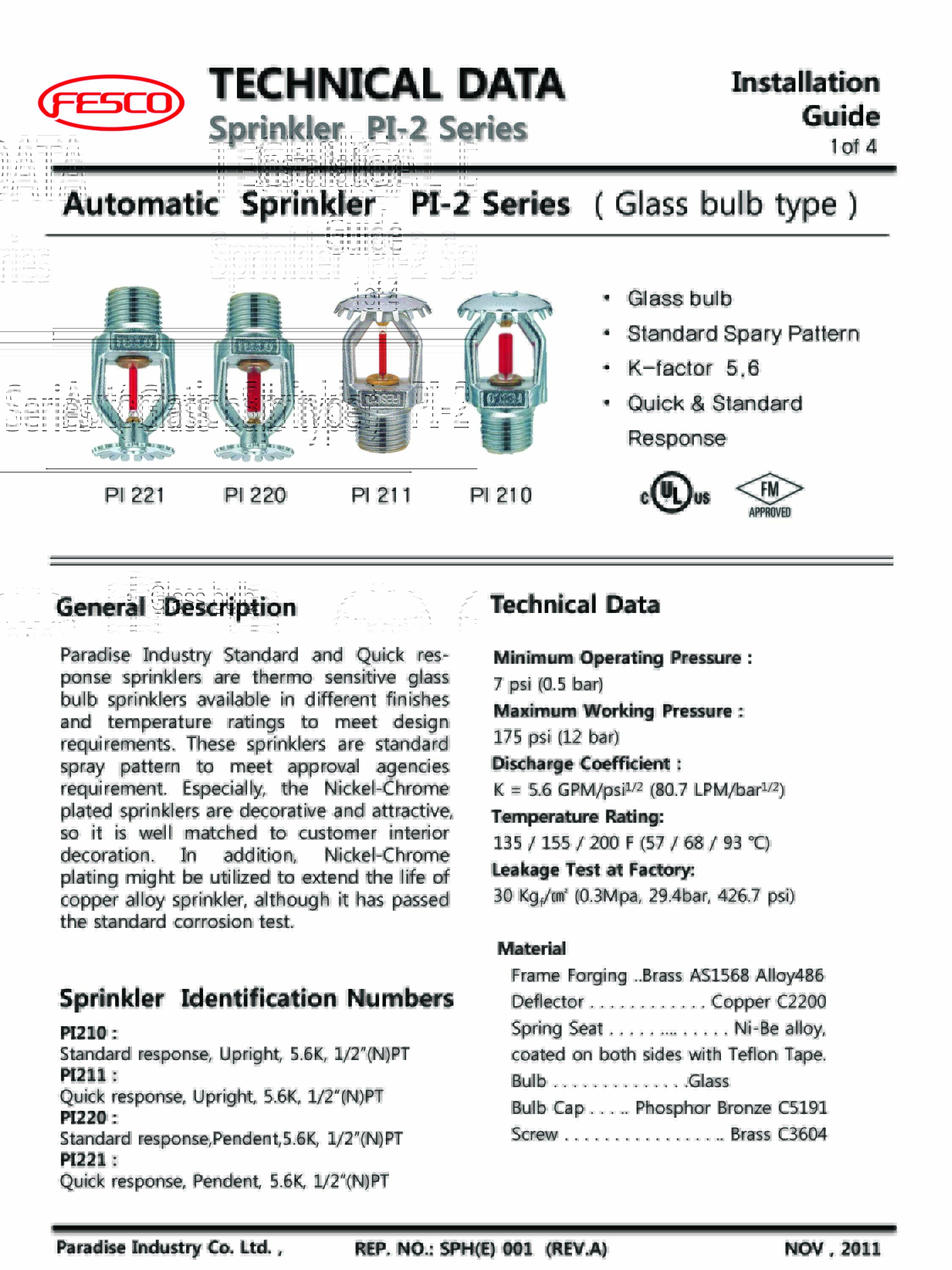 اسپرینکلر آتش نشانی پایین زن واکنش سریع 1/2 اینچ 68 درجه FESCO