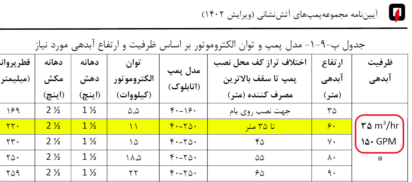 این محصول، بوسترپمپ 3 خط آتش نشانی (بوستر پمپ کلاس S1 و S2) به صورت کامل و شاسی شده شامل تمامی قطعات و تجهیزات مورد نیاز است. در این محصول دو پمپ اصلی مدل 250-40 به ظرفیت 11 کیلووات (15 اسب بخار) و یک پمپ جوکی استفاده شده و مناسب نصب ساختمان با فاصله پمپخانه تا بام حداکثر 35 متر می باشد. سایز خط مکش پمپ ها 2.5 اینچ و سایز خط دهش 1.5 اینچ می باشد. هر خط در قسمت مکش دارای صافی و شیر قطع کن و در قسمت دهش مجهز به شیر یکطرفه، شیر قطع کن و انشعاب بای پس است. برای کلکتورها شیر تخلیه در نظر گرفته شده و برای هر پمپ یک پرشر سوییچ جداگانه نصب می شود. همچنین کلکتور دهش مجهز به مانومتر نمایش فشار می باشد. در کنار این محصول، تابلو برق پمپ آتش نشانی نیز عرضه می شود. تابلوبرق مجهز به تایمر حفظ عملکرد به مدت ده دقیقه، لوازم هیوندایی، دارای قابلیت ارسال سیگنال فالت و فایر به اعلام حریق، آژیر بادی و کلید سایلنت آژیر می باشد. محصولات تولیدی این مجموعه، منطبق بر ضوابط سازمان آتشنشانی تهران ساخته شده و مسئولیت تاییدیه آن نیز به عهده این مجموعه می باشد. جهت دریافت اطلاعات بیشتر و استعلام قیمت تماس بگیرید.